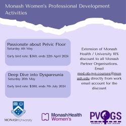 Supported by and affiliated with The Royal Australian and New Zealand College of Obstetricians and Gynaecologists (RANZCOG), PVOGS provides its members with opportunities and resources to facilitate their careers in women's health, through conferences, workshops, podcasts and educational resources.