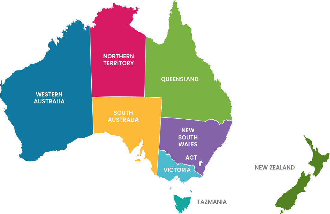 Western Australia Queensland New South Wales ACT Victoria South Australia Tasmania New Zealand Norther Territory